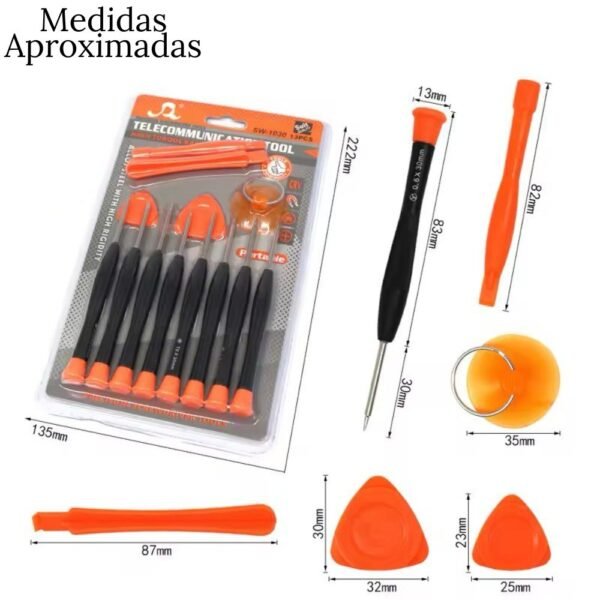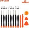 El Kit de Destornilladores de Precisión SW-1030 es la herramienta esencial que no puede faltar en tu hogar o taller. Diseñado específicamente para manipular tornillos pequeños y componentes delicados, este set de 13 piezas te ofrece la solución perfecta para abrir, reparar y limpiar dispositivos electrónicos y objetos cotidianos sin dañar las superficies.