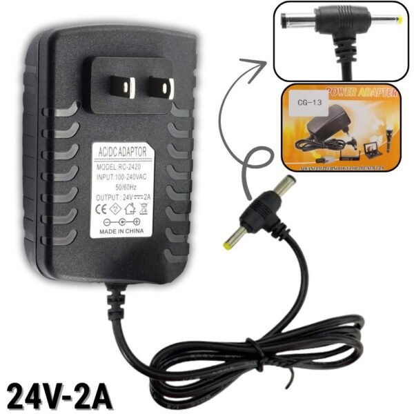 – Potencia Estable: Ofrece una salida constante de 24 Voltios a 2 Amperios, ideal para dispositivos de consumo medio que requieren energía precisa.