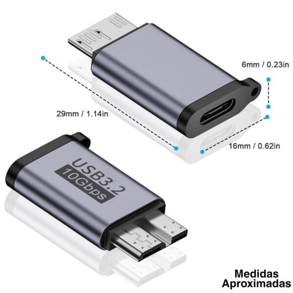 – Conectividad Simplificada: Convierte cualquier cable estándar USB Tipo C en una conexión USB 3.0 Micro-B. Ideal para revitalizar discos duros externos sin tener que comprar sus cables originales de repuesto.