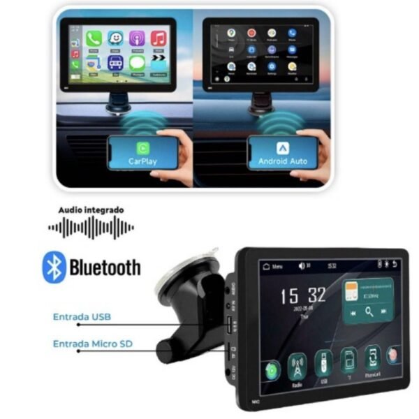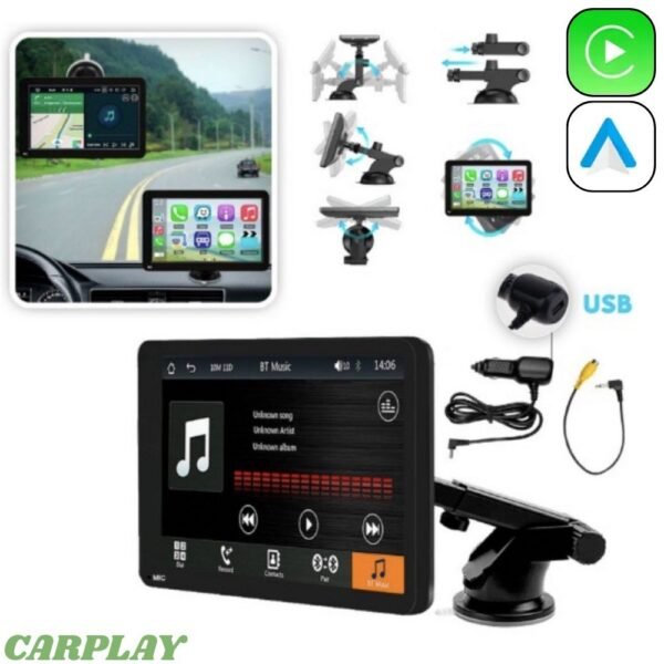 Transforma tu experiencia de conducción con esta Pantalla Inteligente Portátil Universal. Compatible con cualquier vehículo, este dispositivo te permite disfrutar de las funciones avanzadas de Apple CarPlay y Android Auto sin necesidad de desmontar tu tablero ni realizar costosas instalaciones técnicas.