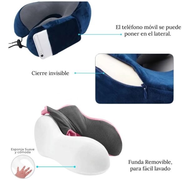 -Diseño ergonómico en forma de U: se adapta al cuello y los hombros para una postura más cómoda.