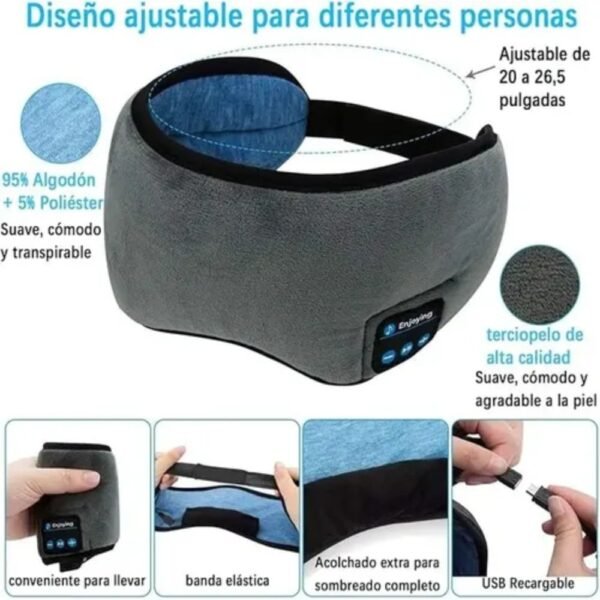 Antifaz Venda para dormir Con Auriculares Bluetooth Inalambricos Integrados Recargable