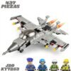– Diseño Detallado: El modelo captura la esencia de un jet de combate con una cabina de pilotaje abatible (con cubierta transparente), alas con alerones, cola doble, tren de aterrizaje y soportes bajo las alas con misiles simulados.
