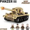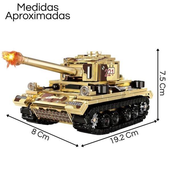 Despliega tu ingenio y construye esta historia pieza por pieza. Este impresionante set de bloques de construcción te permite recrear el legendario Tanque Panzer III, un ícono de la ingeniería militar histórica, ahora en una edición especial con un acabado único que combina camuflaje táctico con detalles dorados y metálicos.
