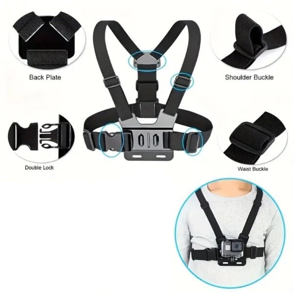 Nuestro Arnés de Pecho (Pechera) Ajustable. Es la base de montaje perfecta para documentar rutas en bicicleta, senderismo, motociclismo, pesca o cualquier actividad donde necesites libertad total de movimiento.