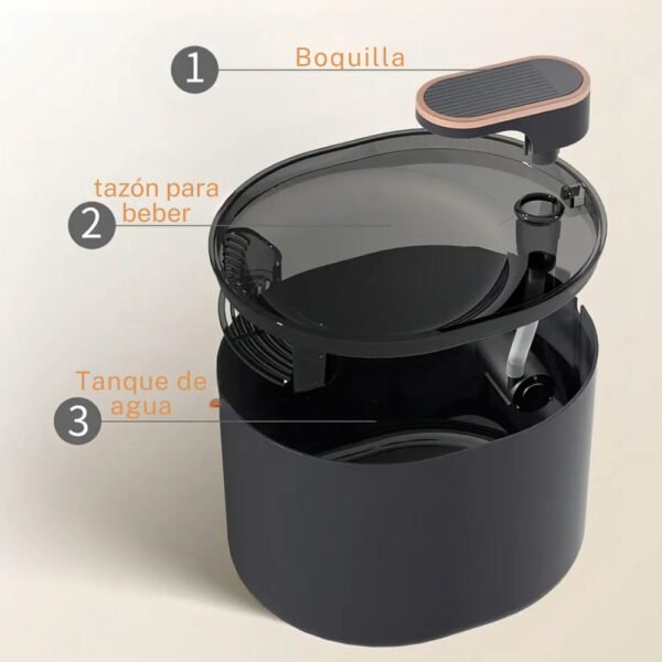 – Flujo de Agua Atractivo: El dispensador elevado vierte el agua suavemente en la bandeja receptora, creando un movimiento constante que oxigena el agua y evita que se estanque, manteniéndola más fresca y apetecible para tu peludo.