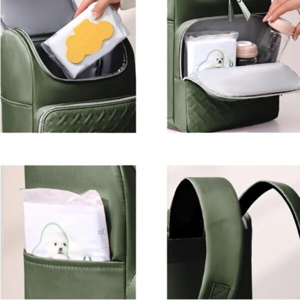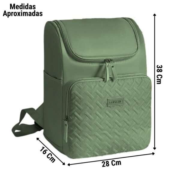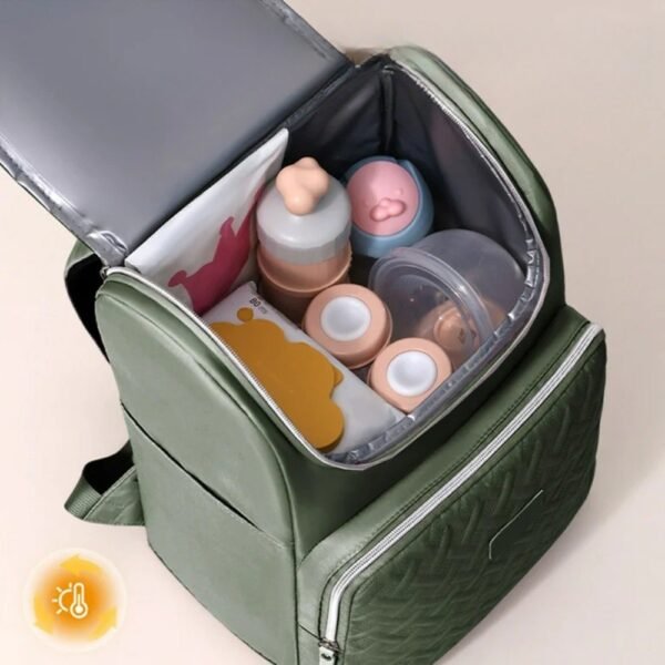 – Bolsillo Frontal Independiente: También cuenta con forro térmico, ideal para separar artículos específicos (como teteros/biberones calientes o cubiertos) del resto de la carga principal.