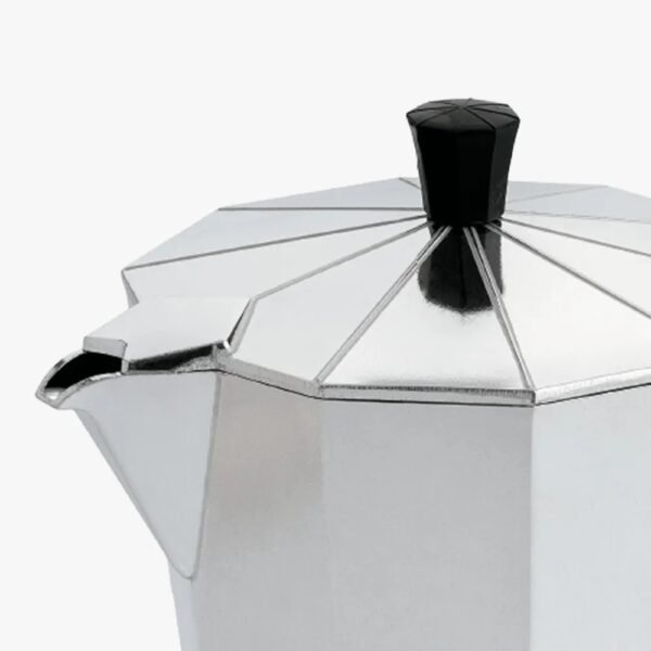 * La cafetera está fabricada en aluminio con pulido natural.