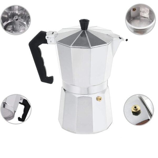 Disfruta del sabor y la tradición del auténtico café con nuestra cafetera moka italiana de 6 tazas, fabricada en acero inoxidable de alta calidad.