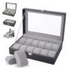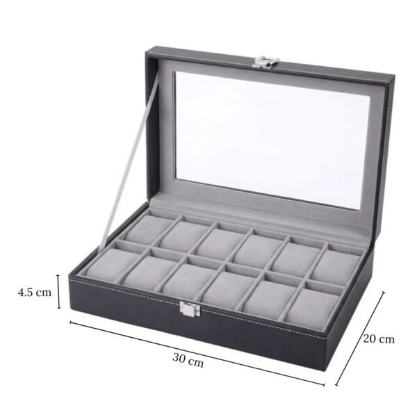 – Capacidad y Comodidad: Capacidad para 12 relojes. Gracias a su tapa de transparente, puedes visualizar y seleccionar el reloj perfecto para cada ocasión sin necesidad de abrir la caja.