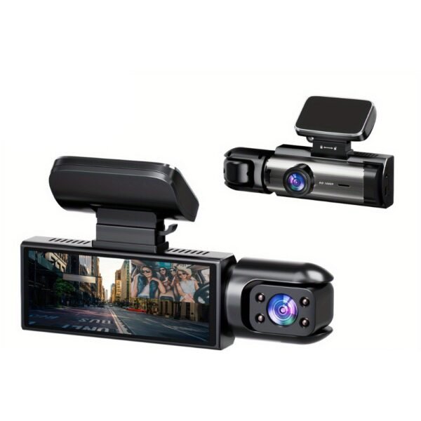 – Sistema de Doble Grabación (2 en 1): Equipada con dos lentes potentes. La cámara principal graba el camino frente a ti en Full HD 1080P, capturando placas y señales con claridad, mientras que la cámara secundaria registra el interior del vehículo.