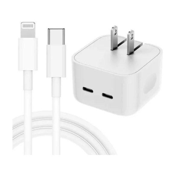 Portada » Productos » CARGADORES PARA CELULAR » Cargador Carga Rápida Para Iphone Carga Doble+cable Lightning 35w