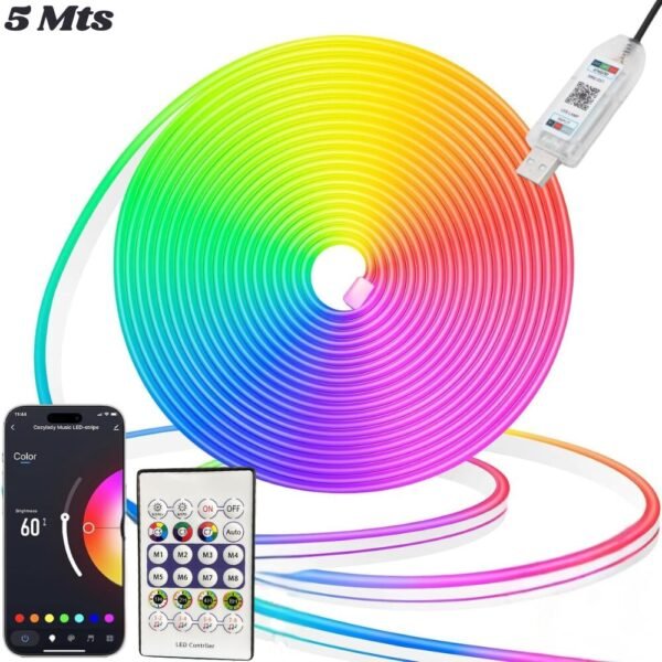 Cinta Led Tira Luces 5 Mts Rgb Neon Multicolor Con Control Bluetooth Conexion Usb