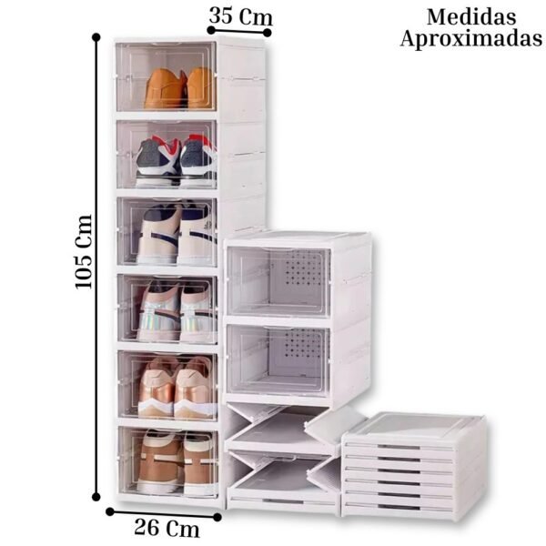 – Ventilación Trasera: Diseñado con orificios de ventilación en el panel posterior para permitir la circulación del aire, evitando los malos olores y manteniendo tus zapatos frescos.