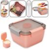 – Bandeja Superior Extraíble (3 Compartimientos): Perfecta para acompañamientos. Divide tus frutas, frutos secos, vegetales picados o snacks sin que se toquen entre sí. ¡Ideal para mantener todo crujiente!