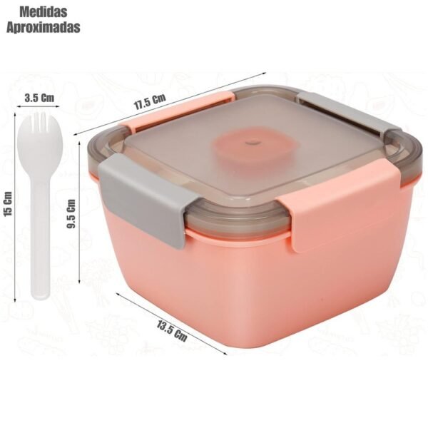 – Envase Exclusivo para Salsas: Sabemos que el aderezo es el alma de la ensalada. Por eso, incluye un mini recipiente central con tapa, diseñado a la medida para que lleves tu vinagreta, mayonesa o salsas favoritas y las agregues justo en el momento de comer.