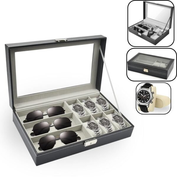 – Capacidad y Comodidad: Capacidad para 6 relojes y 3 gafas. Gracias a su tapa de transparente, puedes visualizar y seleccionar el reloj y anteojos perfecto para cada ocasión sin necesidad de abrir la caja.