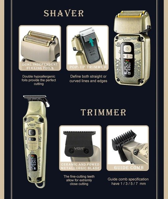 Portada » Productos » BELLEZA Y CUIDADO PERSONAL » MAQUINAS DE MOTILAR » Combo Maquina De Motilar Patillera Afeitadora Y Rasuradora Shaver Vgr V-641
