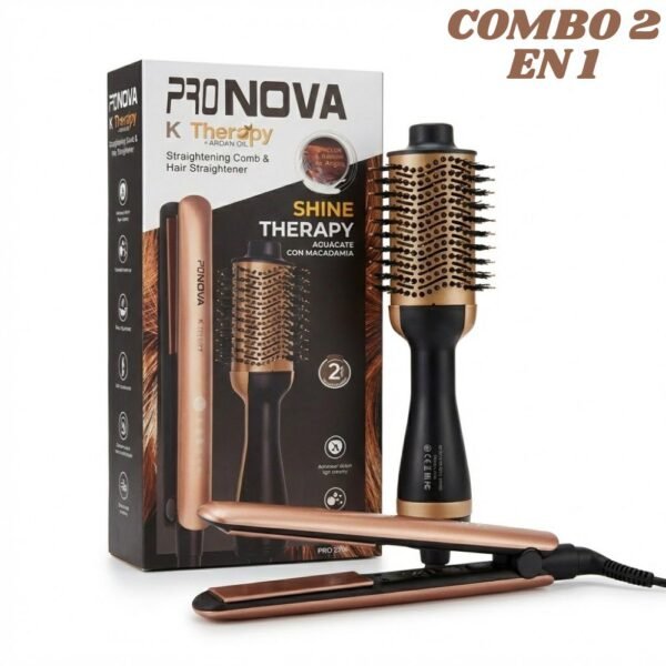 Consiente tu cabello con el cuidado que se merece con este práctico Combo de Plancha y Cepillo Secador, enriquecido con las propiedades nutritivas de la macadamia. Diseñado para facilitar tu rutina de peinado.