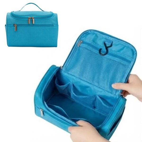 – Amplia Capacidad de Almacenamiento: Cuenta con múltiples compartimentos, bolsillos internos y separadores para organizar desde maquillaje, brochas, cremas, hasta accesorios personales como cepillos, joyería o productos de higiene.