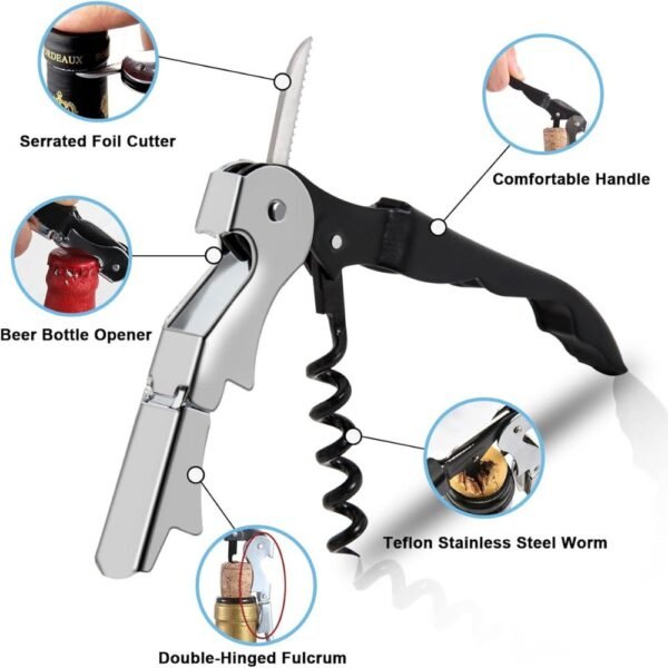 Este Sacacorchos y Destapador Multifuncional es el accesorio indispensable que no puede faltar en tu cocina, bar o en tu próxima reunión. Diseñado con un estilo clásico, combina elegancia, durabilidad y una funcionalidad superior para abrir todo tipo de botellas sin esfuerzo.