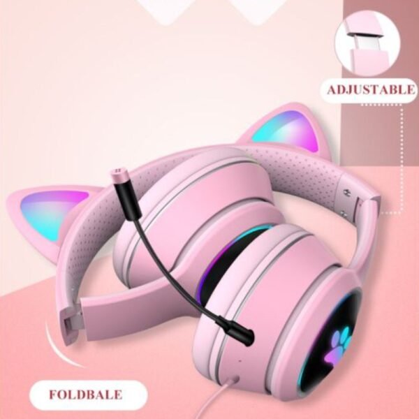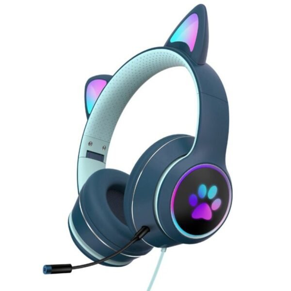 Diadema Alambrica Gamer Akz-022 Orejas De Gato Iluminacion Rgb Audifonos Usb