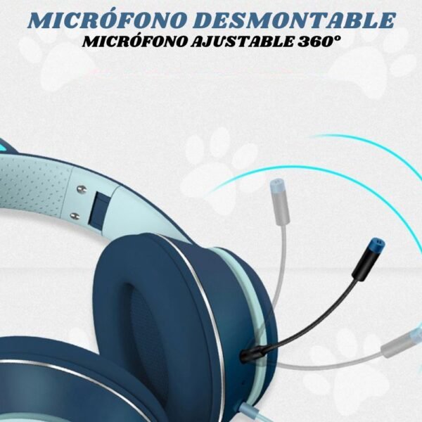 – Diseño con Iluminación RGB: Destaca en cada transmisión gracias a sus orejas de gato y el encantador detalle de huellas en las orejeras, ambos equipados con luces RGB vibrantes.
