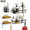 Transforma el caos de tu baño en un espacio elegante y ordenado con este Set de 5 Organizadores de Pared. Diseñado en un sofisticado acabado negro mate estilo industrial, este sistema de almacenamiento aprovecha al máximo el espacio vertical, permitiéndote tener todos tus artículos de aseo personal al alcance de la mano sin necesidad de dañar tus paredes.