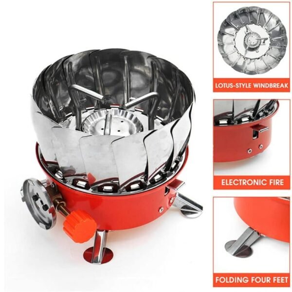• Quemador a prueba de viento: el parabrisas se puede abrir o guardar como una flor de loto.