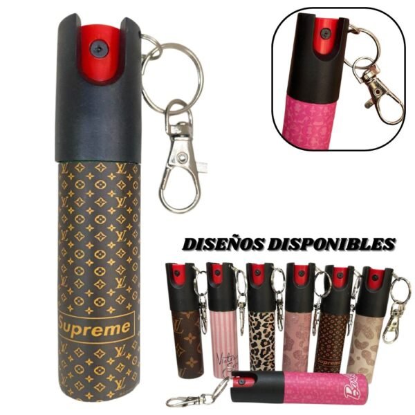 Gas Pimienta Nato Llavero con diseños de 20 ML, es un método de defensa personal, con gran reconocimiento a nivel mundial, que te servirá en situaciones peligrosas que atenten contra tu integridad. Será tu aliado de defensa personal cada vez que lo requieras. Este producto te permite realizar múltiples disparos, llegando a alcanzar una distancia de hasta 5mts de donde te encuentres, además, cuenta con seguro en el gatillo para que no se riegue; y lo mejor de todo, por su presentación es fácil de utilizar y cargar en tu cartera a donde quieras que vayas.