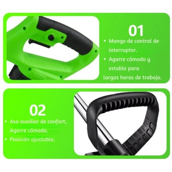 Su diseño ajustable y su portabilidad hacen que sea la herramienta perfecta para mantener tu jardín impecable sin esfuerzo, proporcionando una solución práctica y eficaz para el cuidado del césped.