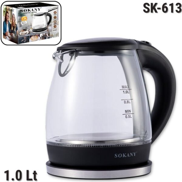 Hervidor Electrico Calentador De Agua 1.0 Litros Tetera De Vidrio Sokany