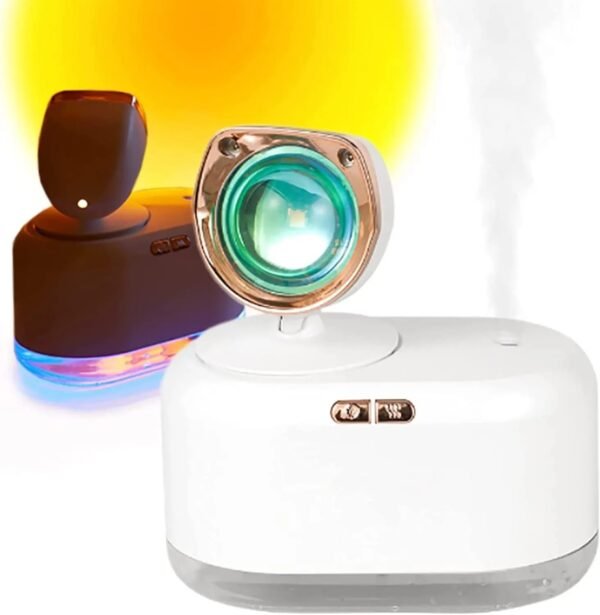 Difusor humidificador de luz de puesta de sol, Mini difusor inalámbrico portátil creativo para el hogar, hermosa luz de escritorio, rociador de niebla.