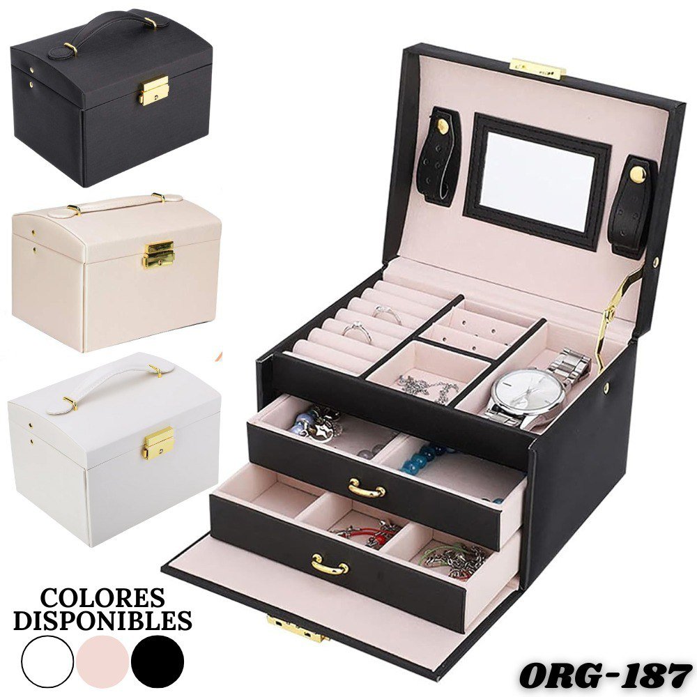 Descubre nuestro elegante y compacto joyero de diseño minimalista, perfecto para almacenar tus joyas favoritas. Con una apariencia sofisticada, este joyero es ideal para guardar adornos, aretes, candongas, collares y más.