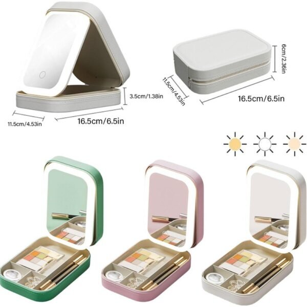 Ya no dependas de la mala iluminación de los hoteles o de las sombras en tu habitación. Con este organizador, tienes el espacio para tus tesoros y la luz perfecta para maquillarte, todo en un solo lugar. Ideal para viajes, para tu mesa de noche o como el regalo más sofisticado.