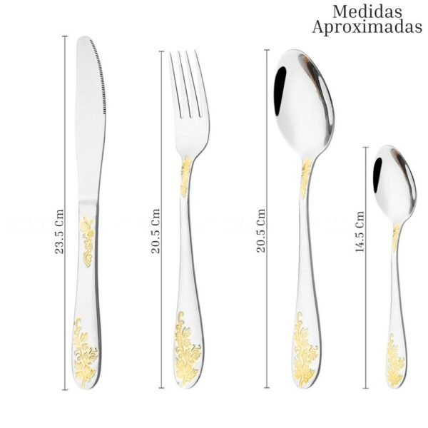 Juego De Cubiertos De Acero Inoxidable 24 Piezas Cuchillo Tenedores Cucharas Plateado Con Estampado