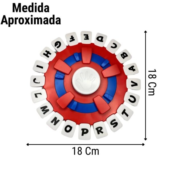 – Rueda Electrónica de Letras: El corazón del juego es su tablero circular rojo con teclas blancas que representan las letras del abecedario. Al decir una palabra, debes presionar la letra correspondiente para «bloquearla», obligando a los demás jugadores a pensar en palabras con las letras restantes.