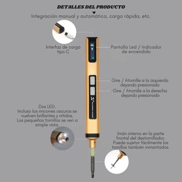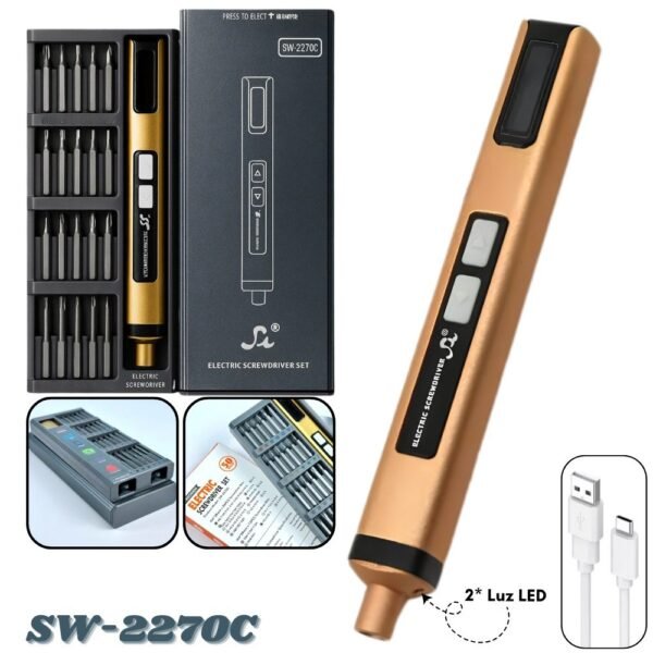 ¡Lleva tus reparaciones al siguiente nivel con precisión, velocidad y un estilo insuperable! Ya sea que te dediques al servicio técnico profesional o te encante reparar tus propios dispositivos en casa, este destornillador eléctrico es la herramienta definitiva. Olvídate del esfuerzo manual y el riesgo de dañar componentes delicados; automatiza tu trabajo ahorrando tiempo en cada tornillo.
