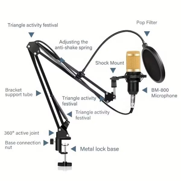 Kit Profesional Micrófono Condensador Alambrico Consola de Sonido V8 Plus Filtro Antipop Brazo Articulado.