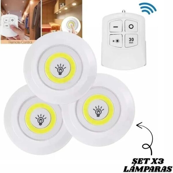 Set X3 Lamparas Luz Led Portatil Inalambricas Adhesivas + Control
