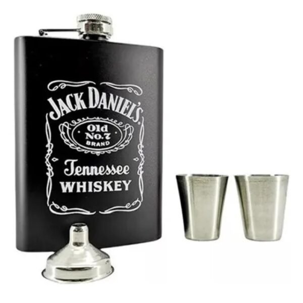 Este set es perfecto para llevar whisky u otra bebida de tu preferencia y brindar en cualquier ocasión, gracias a los vasos incluidos. Además, su diseño sofisticado lo convierte en una excelente opción de regalo para hombres.Licorera Wiskera Cantimplora 8 oz Acero Inoxidable Jack Daniel´s