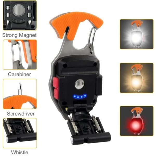 Esta no es solo una linterna; es una central eléctrica compacta de utilidad diseñada para el aventurero al aire libre, el trabajador manual o cualquier persona que valore estar preparada para lo inesperado. Con un diseño robusto, esta linterna combina iluminación potente con 7 herramientas esenciales para eldía a día.