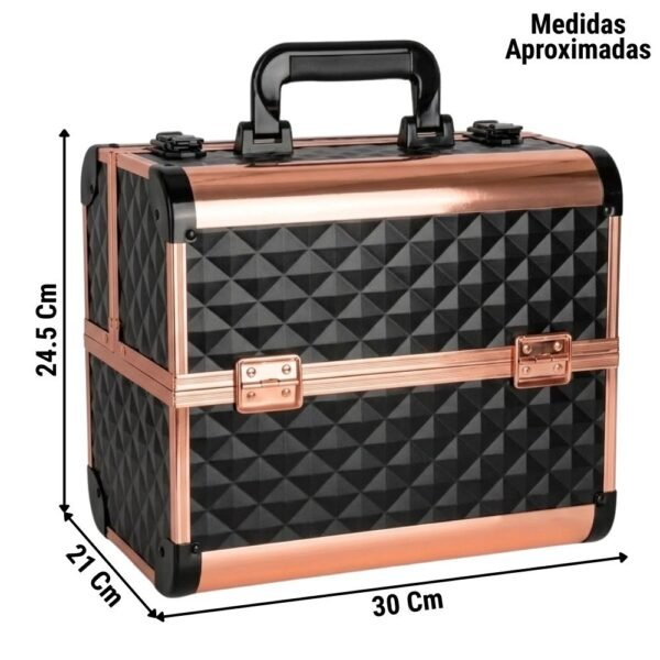 Maleta Organizador De Maquillaje Cosmetiquera Neceser 4 Bandejas Negra Oro Rosa.