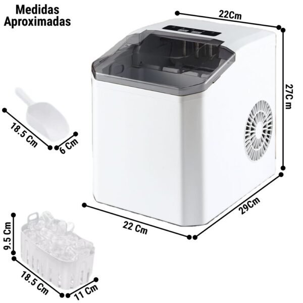 – Accesorios Incluidos: Viene lista para usar con una canasta de drenaje removible y una pala de plástico (scoop) para servir el hielo de forma higiénica y fácil.