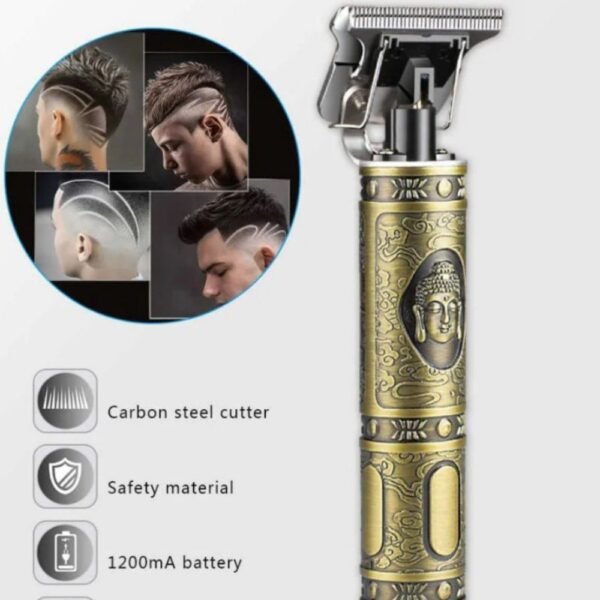 Define tu estilo con precisión y elegancia utilizando la Patillera WS-T99. Esta máquina cortadora de pelo destaca no solo por su rendimiento profesional, sino por su cuerpo con grabado artístico de Buda, que le otorga un aspecto retro y lujoso único. Es la herramienta definitiva para lograr degradados perfectos, líneas nítidas y diseños detallados en el cabello o la barba, todo con la libertad de un sistema inalámbrico.