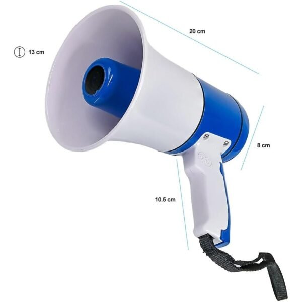 Dispositivo portátil diseñado para amplificar la voz y facilitar la comunicación en espacios amplios o ruidosos, ideal para su uso en eventos, manifestaciones, actividades al aire libre, deportes, y situaciones de emergencia. Este megáfono es recargable, lo que significa que no necesita baterías desechables, lo que lo hace más económico y ecológico.