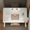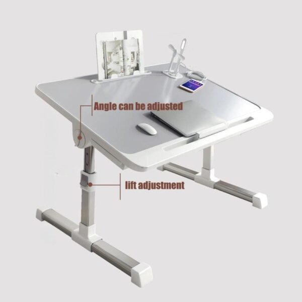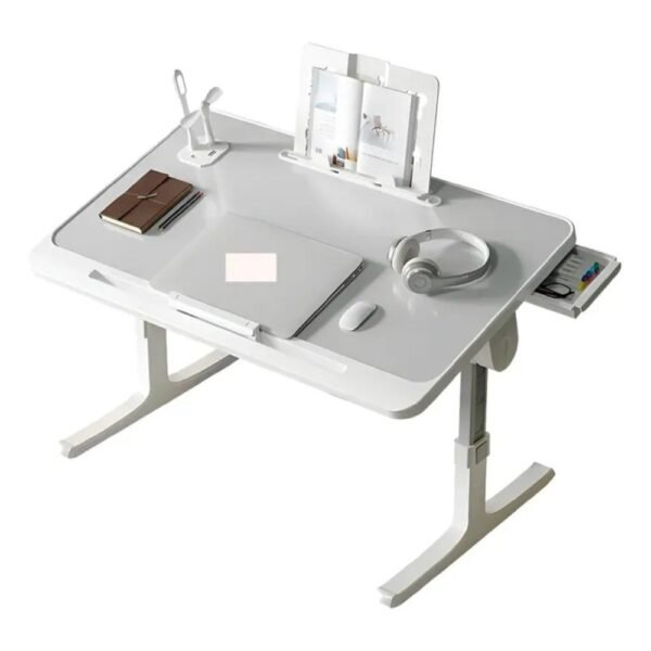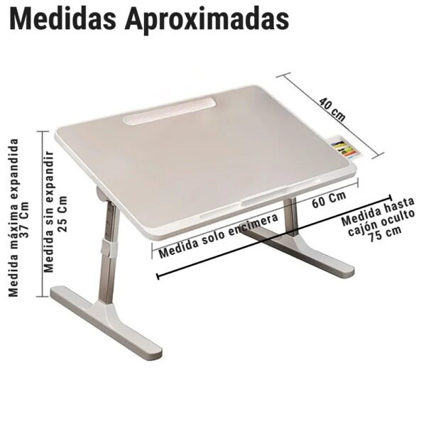 – Diseño Inteligente: Cuenta con una ranura especial y un tope antideslizante que evita que tu laptop o libros se resbalen al inclinar la mesa.