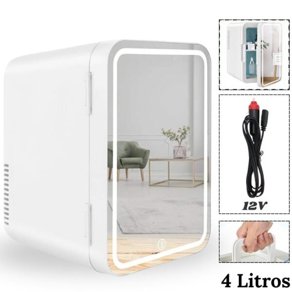Portada » Productos » BELLEZA Y CUIDADO PERSONAL » Mini Nevera Refrigerador De Maquillaje Con Espejo De Luz Led Portátil 4 Litros Blanca