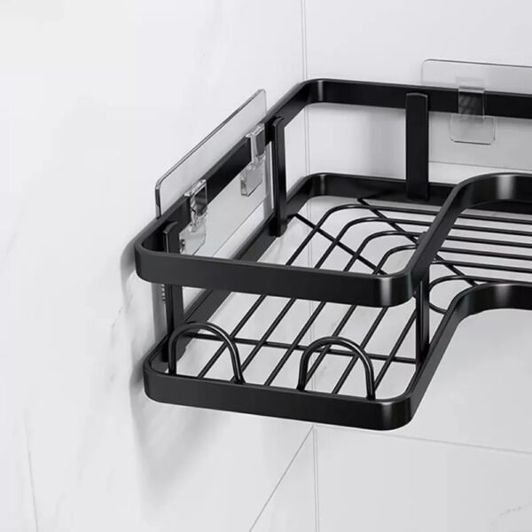 -Set completo (5 piezas): Incluye 2 estantes esquineros, 2 jaboneras, 1 soporte para cepillos de dientes y 7 adhesivos resistentes.