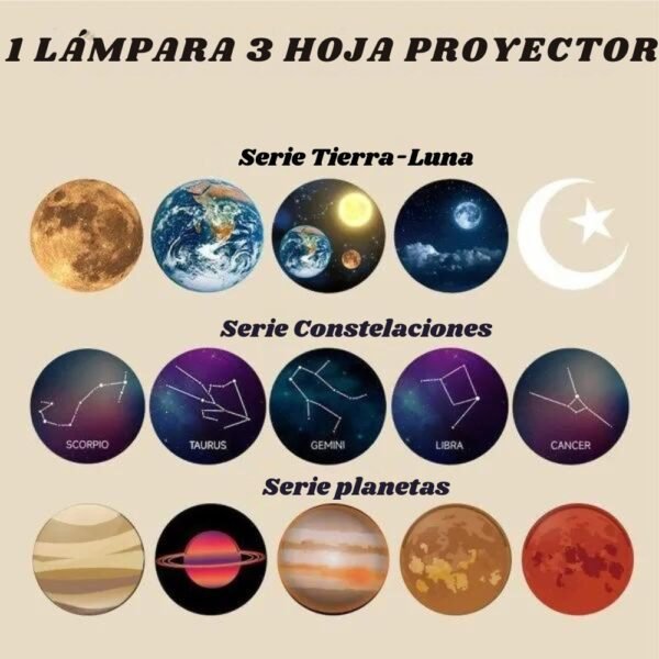 Portada » Productos » PROYECTORES » Proyector De Pared Lampara de Proyeccion Atmosferica Luna Planetas Constelaciones Recargable